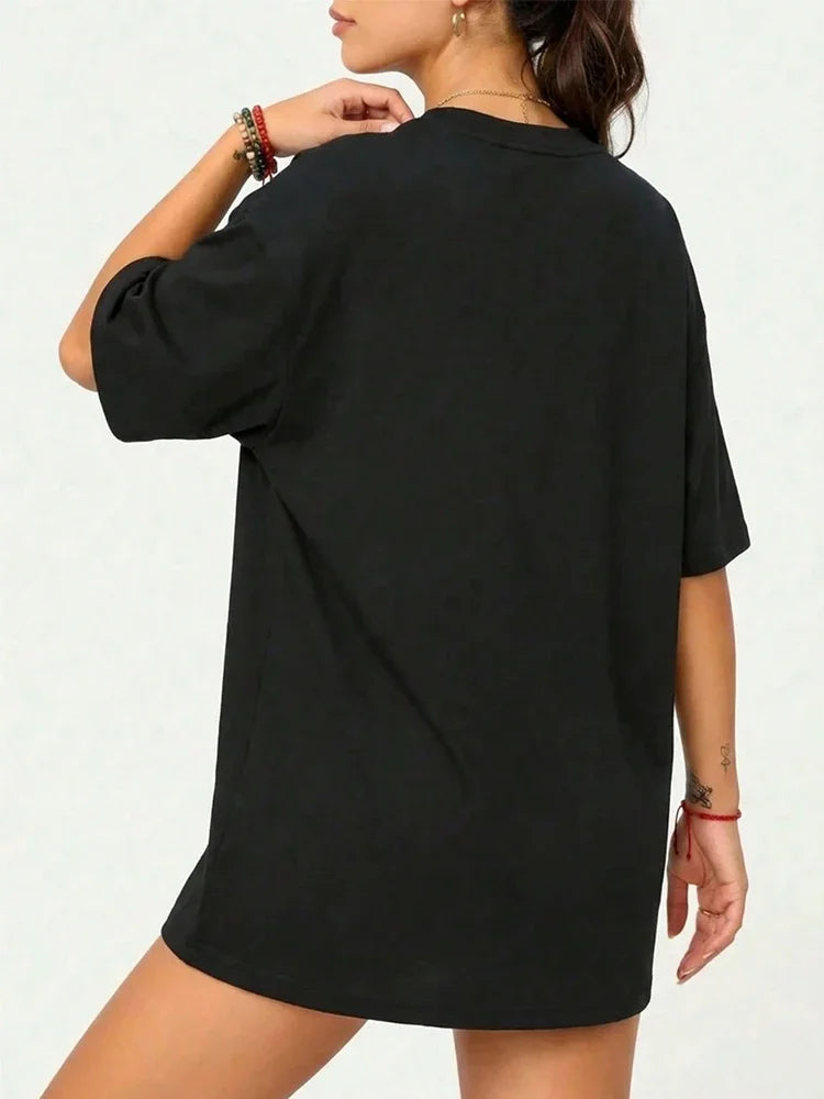 Korean Style 1990 Side By Side Letter Printed Female T-Shirt Summer Casual T Shirt Fashion Loose Streetwear Women Tops