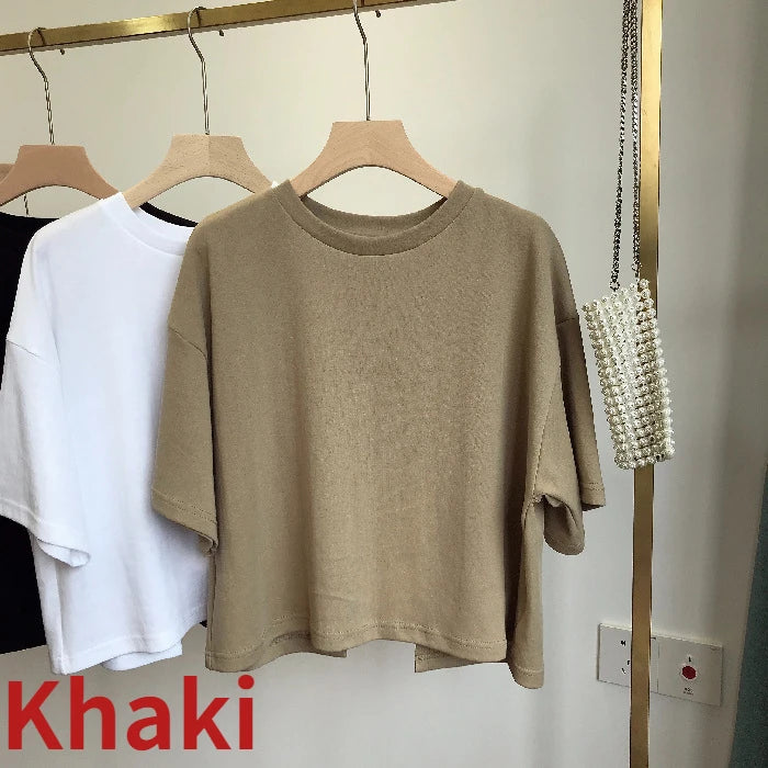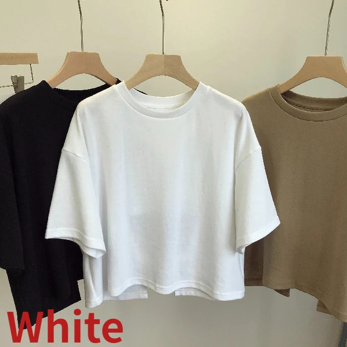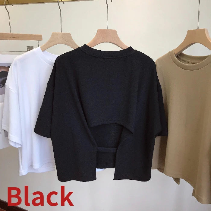 Summer New Ladies Casual Backless T-Shirt 2023 Korean Women Round Neck Loose Sweet Spicy Wind Short-Sleeved Crop Tops